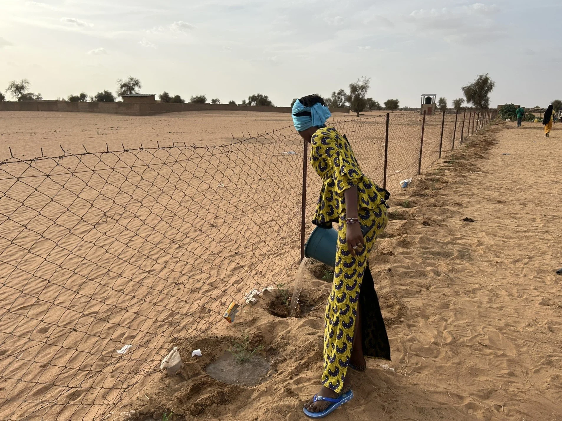 A member of the Togane women’s garden waters newly planted native Acacia Mellifera trees.